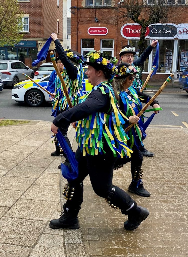 We had great fun at Cullompton Spring Fest. As usual we had a fantastic audience, with enthusiastic participation in our joining in dance. We hope some of the people we spoke to will decide to give Morris dancing a go when our practices start up again in September. Until then come and see us dancing at the locations on our 2026 programme – we’d be delighted to see you!